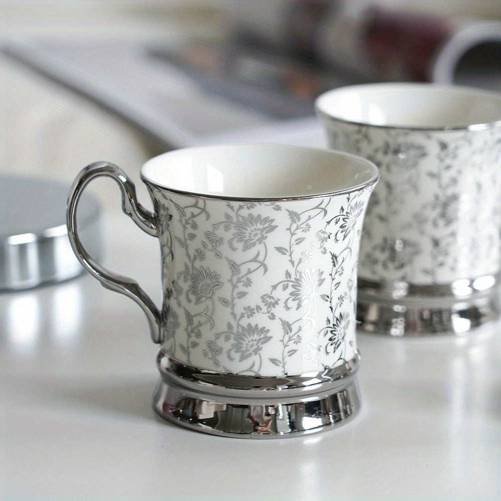 Meet Rosalie—where delicate silver-embossed florals bloom across fine bone china, transforming your daily coffee or tea into a moment of quiet luxury. The raised floral design catches the light with every sip, while the translucent bone china adds an heirloom quality to your morning routine.